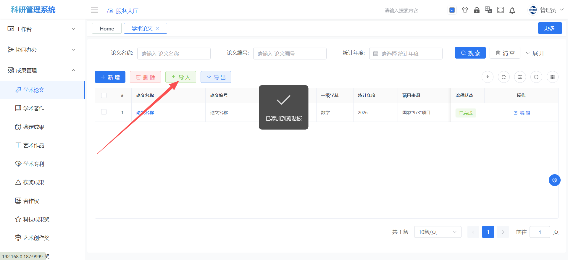 成果导入